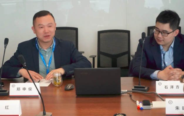 隨后,朱建明書記參觀了順豐創新中心,詳細了解了園區運營情況。在接下來的座談會中,順豐創新中心負責人石澤方對順豐創新中心的項目情況進行了介紹,中奧科技創始人鄭申俊、副總裁沈俊青向區領導一行介紹了中奧科技在浙江省數字化改革方面的探索。