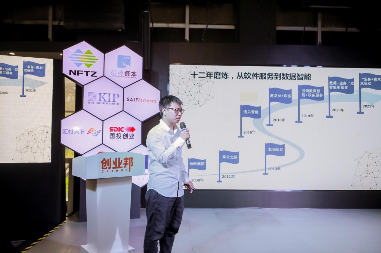 在智慧城市交流研討會上,中奧科技產品研發部總監江易介紹了中奧科技在智慧城市建設方面的經驗,中奧提供以“數據+智能+業務”三中臺為支撐的一站式智慧城市解決方案,通過視覺計算、聽覺計算、自然語言分析、大數據、人工智能等核心技術,提供交通指數、營商環境分析、重大活動安保等高新技術產品,為智慧交通、智慧社區、智慧市監、智慧警務等智慧城市建設提供持續的技術應用支撐。